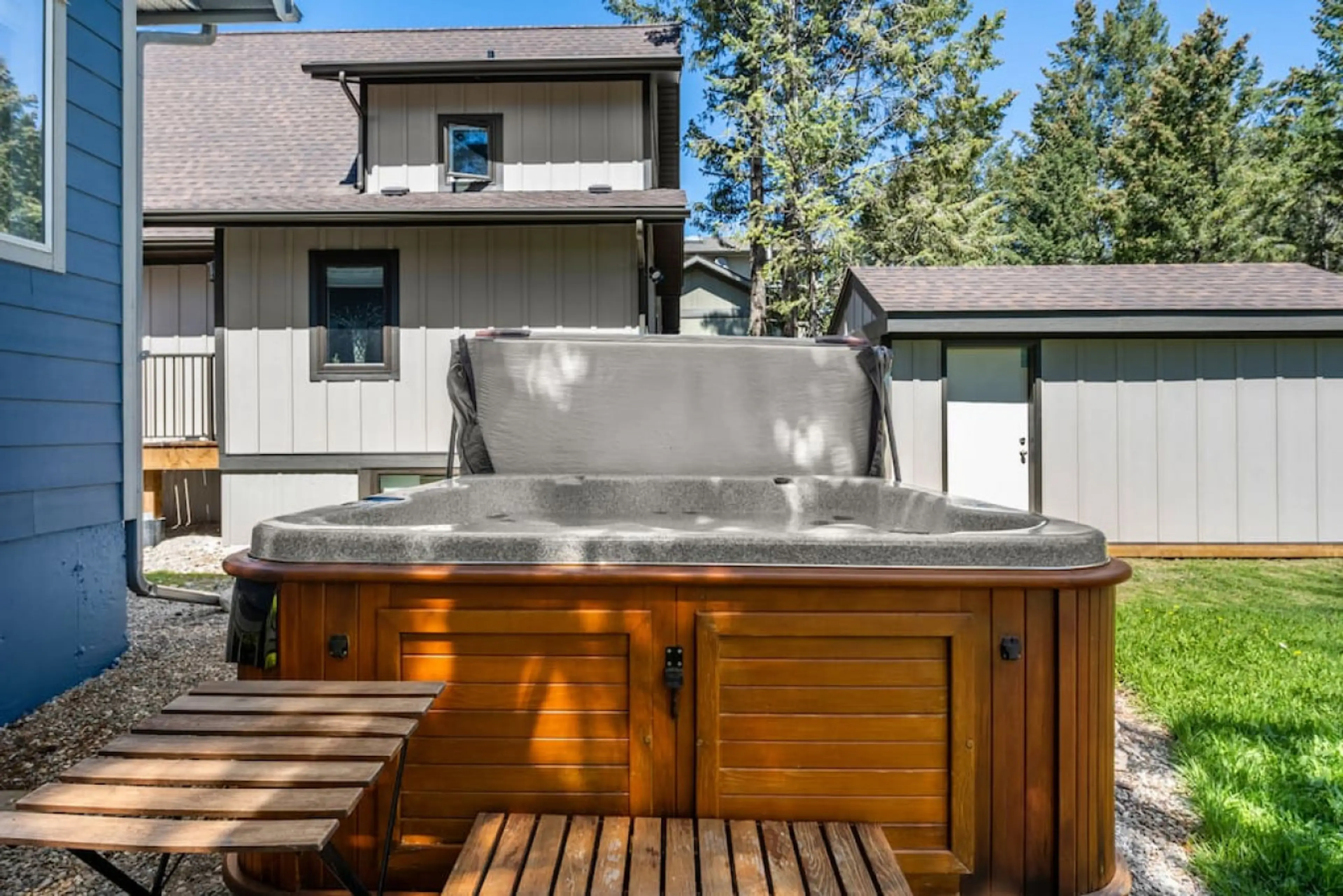 Great property with multiple spaces to hang out, which was great for multiple families with different ages. Everything you need for cooking was there. Could use some new frying pans though. Nice back yard with a hot tub that had shade in the evening. A playground is practically attached to the back yard which was great. Its was always quiet. 15 minute walk to the splash park and 20 to resteraunts.